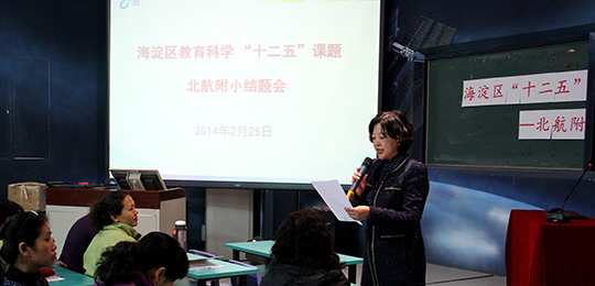 我校分成两组召开了海淀区教育科学“十二五”规划课题——北航附小结题会,班主任、语文、数学、英语、信息、科学、体育、音乐八个学科的代表,针对三年来课题实施的研究过程进行汇报,来自海淀区教科所文军庆老师,中国关心下一代工作委员会发展研究中心专家、教育专家、特级教师孙蒲远老师,首都师范大学初等教育学院博士邓艳红教授和首都师范大学初等教育学院博士、副教授欧群慧,对课题研究过程一一进行了点评。这次结题会让我们看到了各课题组三年来的行动轨迹,感受到了课题取得了令人欣慰的研究成果,更让我们清晰地了解到课题组在研究实践中所表现的热情、务实的作风,看到了研究教师们艰辛的足迹和奋发作为的团队风貌。同时又是促进学校发展,促进教师专业成长的一次良好契机,让更广大的老师进一步认识、了解课题研究,参与课题研究,逐步由教书者转为研究型人才。